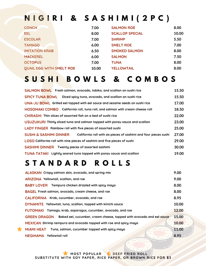 Sushi Sashimi Menu